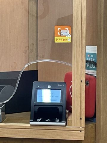 健康保険証の代わりにマイナンバーカード持参して頂き、カードリーダーを利用し、顔認証していただくことで利用可能です。